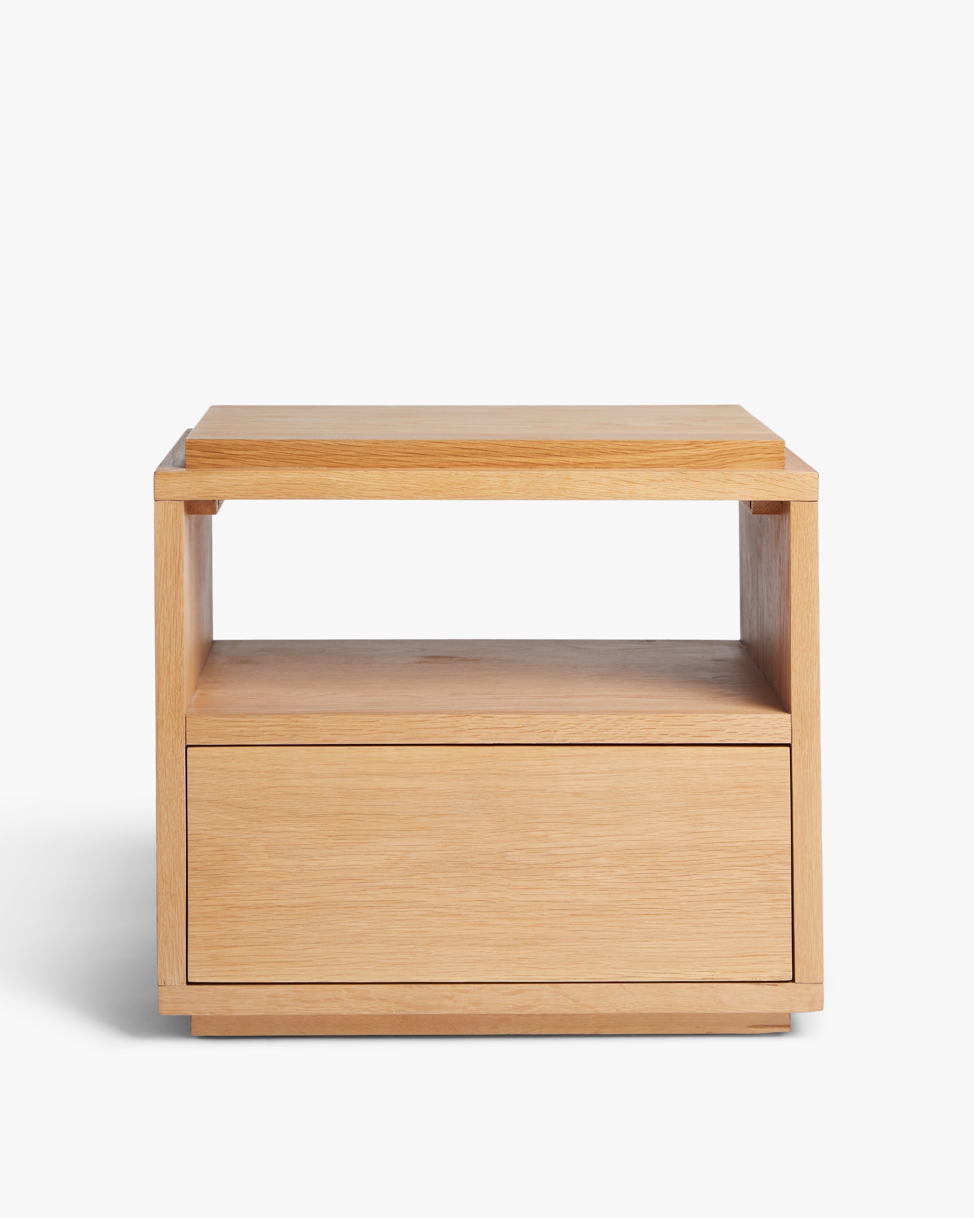 Ein sauber geschnittener Nachttisch, der die Schönheit der Symmetrie verkörpert. Mit einfachen Linien und einem minimalistischen gestapelten Design verfügt diese rechteckige Tabelle über ein offenes Regal und eine drückende unteren unteren Schublade, um einen einfachen Speicher zu erhalten. Platzieren Sie es neben das Bett oder das Sofa, um ein Gefühl der geometrischen Harmonie zu inspirieren.