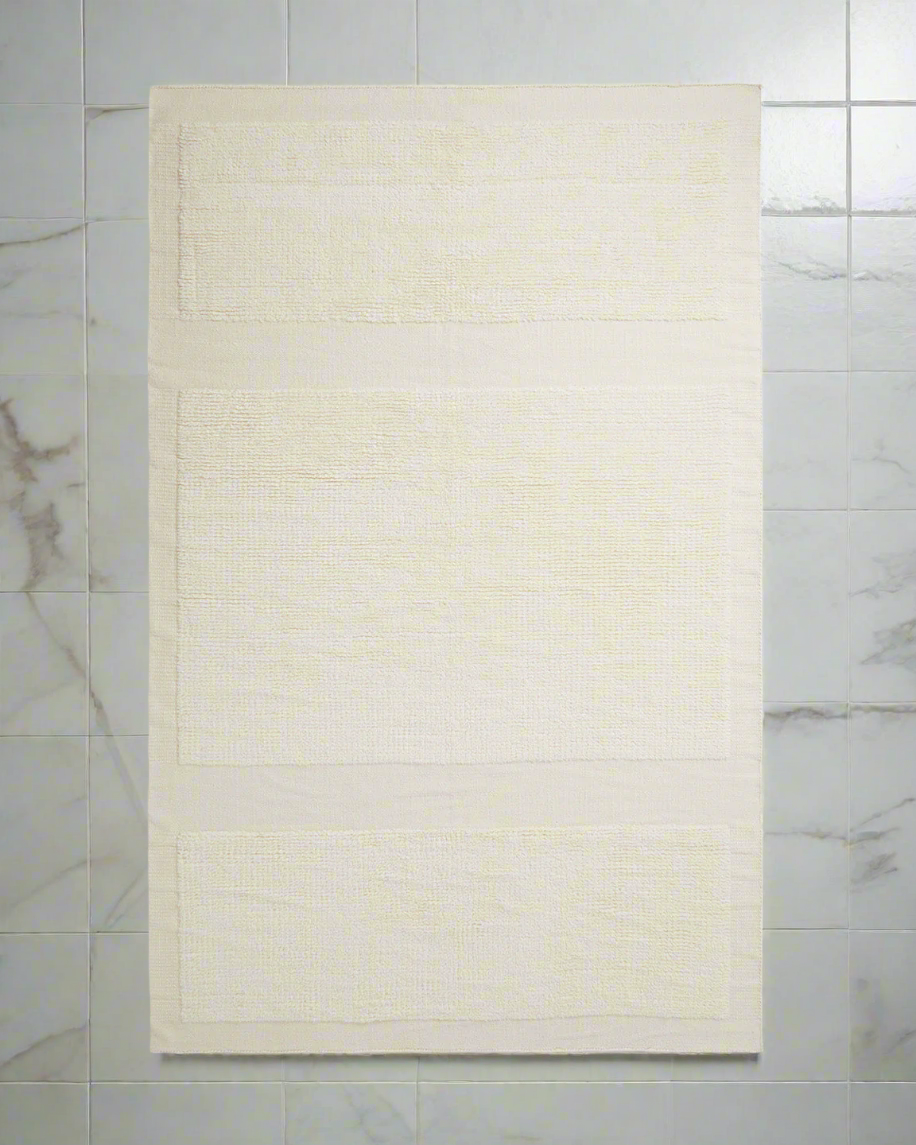 Soften your landing with this hand-woven rug, featuring tufted rectangular shapes for a subtle tonal pattern. It can be placed strategically around the room to outline a space and add definition to your furniture. Put down horizontally under the bed, and step into comfort as soon as you wake up.